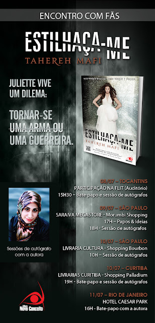 No início do mês de julho, a autora Tahereh Mafi fará uma visita ao Brasil a convite da SEDUC (Secretaria da Educação do Estado de Tocantins). Na ocasião, ela participará da FLIT, na cidade de Palmas e, atendendo às solicitações dos fãs de outras partes do País, ela aproveitará a viagem para se encontrar com blogueiros e jovens leitores em São Paulo, Curitiba e Rio de Janeiro.